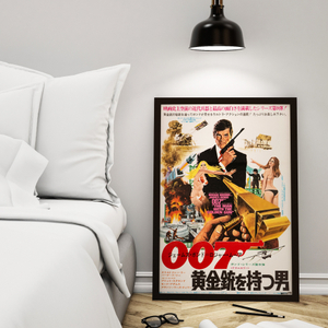 The ninth film in EON Productions' James Bond series, The Man with the Golden Gun was the fourth and final Bond film directed by Guy Hamilton and the last to be co-producted by Harry Saltzman. Roger Moore's second outing as 007 culminated in a pistol duel between the suave spy and Christopher Lee's cunning assassin Francisco Scaramanga to recover the Solex Agitator, a device that can harness the power of the sun. Several kung fu scenes and a predominantly Asian location capitalised on the current craze for martial arts movies. The Japanese B2 utilised the same Robert McGinnis artwork as the British and US poster campaigns, which placed the viewer in the role of the mysterious titular villain, aiming a shining single-shot golden gun directly at 007.