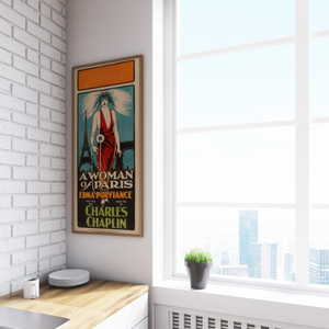 An exceptionally rare and beautiful linocut daybill for the first Australian release of the 1923 silent romantic drama A Woman of Paris, featuring the film's heroine Edna Purviance in a showstopping gown and headdress against the twinkling backdrop of the Eiffel Tower and Arc de Triomphe. Written, directed and produced by Charlie Chaplin in a departure from his usual comedy roles, Chaplin informed the audience with an introductory title card that A Woman of Paris was "the first serious drama written and directed by myself." Inspired by the romantic European escapades of Peggy Hopkins Joyce, Chaplin wrote the tale of pampered mistress Marie St Clair for his longtime comedy collaborator Purviance in an effort to develop her career as a dramatic actress. Among the ecstatic reviews on release, film critic CA Lejeune noted A Woman of Paris is a remarkable film, an historic film, a film to see and consider, while actress Mary Pickford declared it a gripping human story throughout, later adding Charlie Chaplin is the greatest director of the screen... He's a pioneer... I do not cry easily when seeing a picture, but after seeing Charlie's A Woman of Paris I was all choked up — I wanted to go out in the garden and have it out by myself. Despite the critical acclaim, audiences were disappointed by the absence of Chaplin himself, who only appeared in a tiny cameo role as a railway porter, and consequently the film closed as a commercial failure, thereafter virtually forgotten for over fifty years. As the final work of his 75 year career, Chaplin re-scored and re-issued the film in 1976 to overwhelming praise as a lost masterpiece.