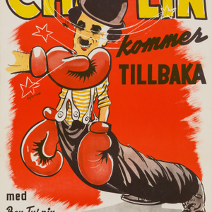 Charlie Chaplin takes a punch on this bold and eye-catching poster for the 1944 Swedish re-release of his 1915 silent comedy short 'The Champion'. Released by Essanay Studios, the boxing short starred Chaplin as the challenger who takes on the world champion with the help of his pet bulldog. Chaplin had previously played a boxing referee in his 1914 short 'The Knockout,' and would go on to revisit the pugilist theme in his 1931 masterpiece 'City Lights.' Art by Bjorne.